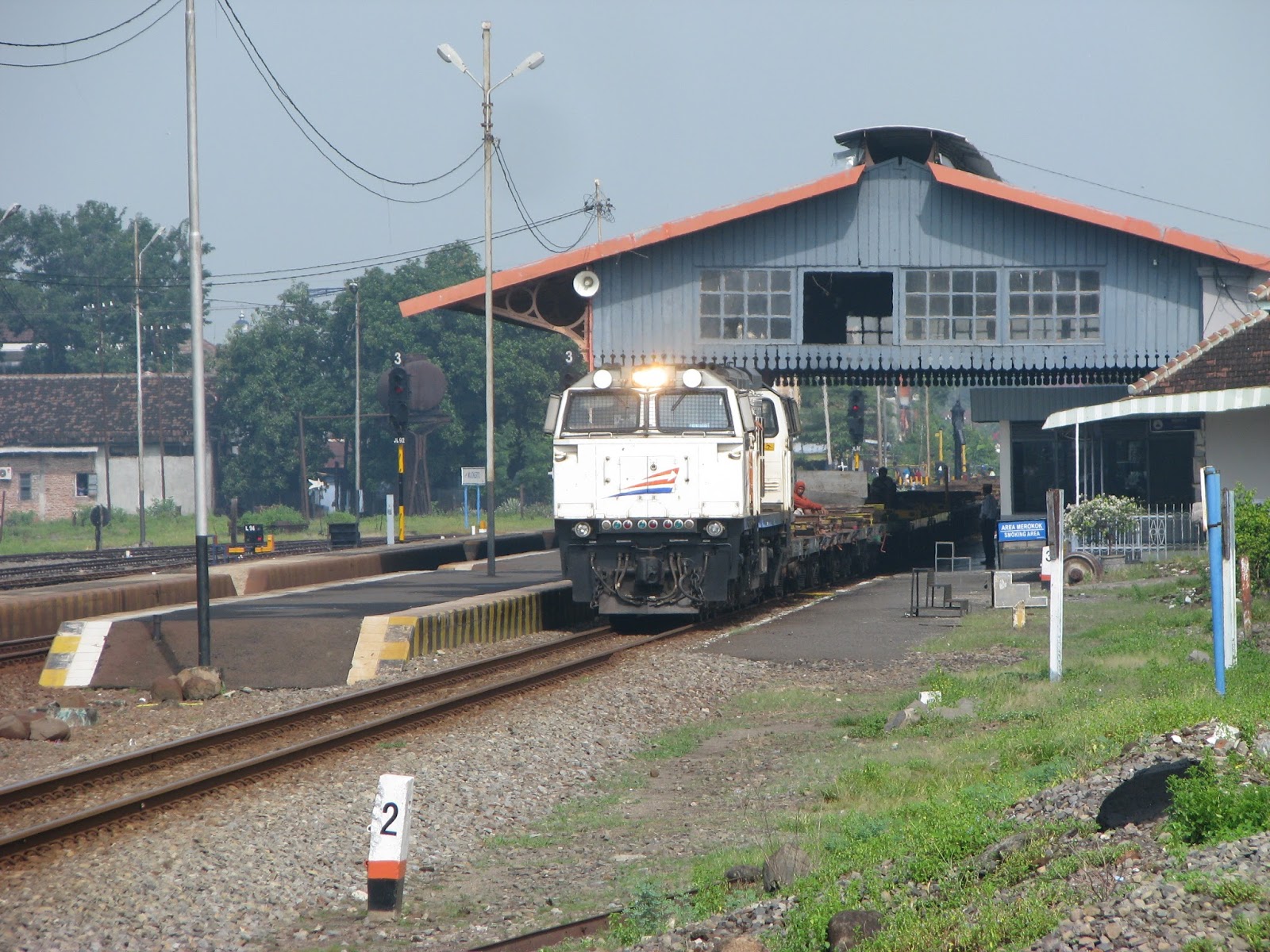 CC206 Bersama Gerbong Datar di Stasiun Mojokerto